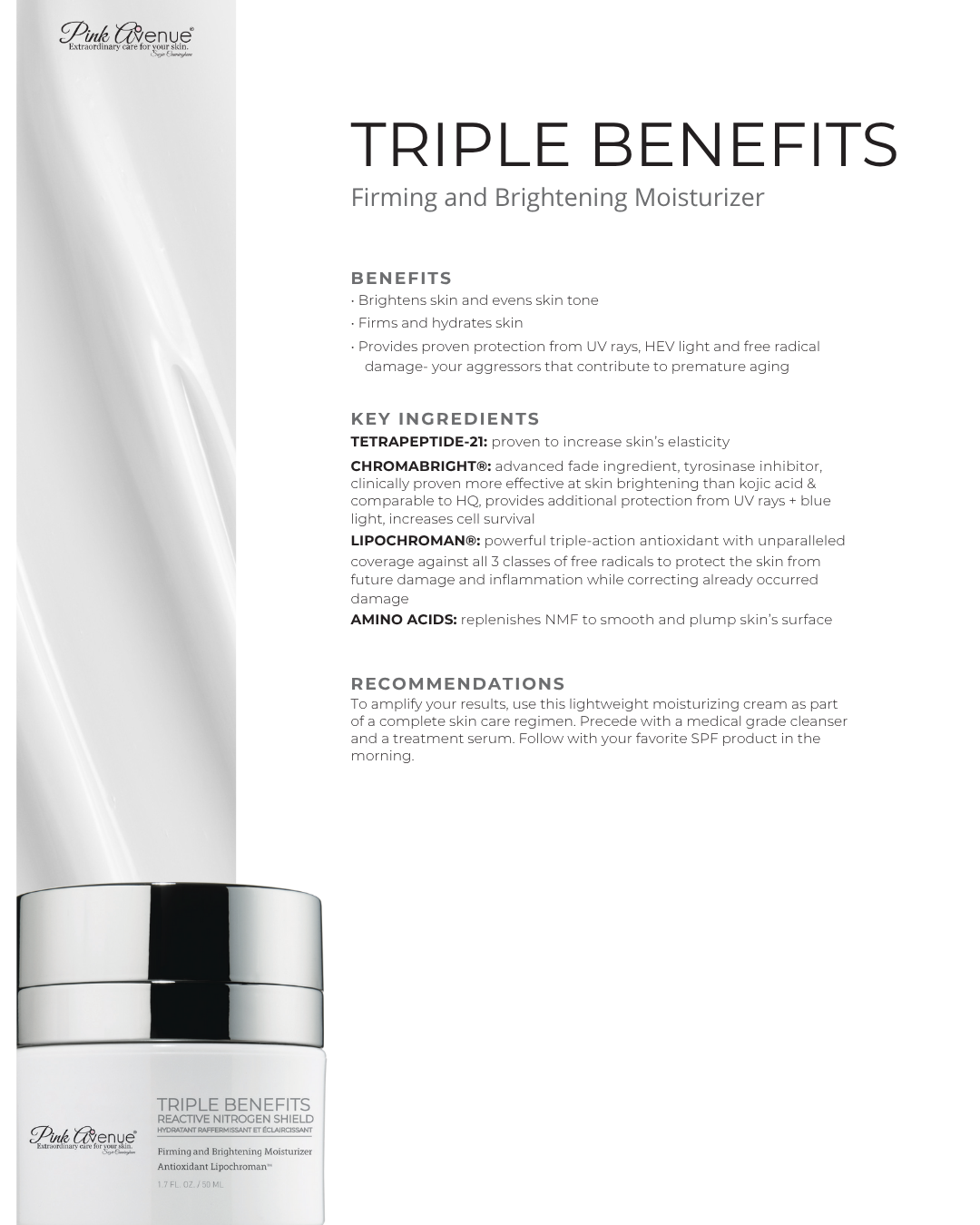 Chromabright®: Skin brighteners minimizes the appearance of uneven looking skin tone and age spots while being photo-protective.